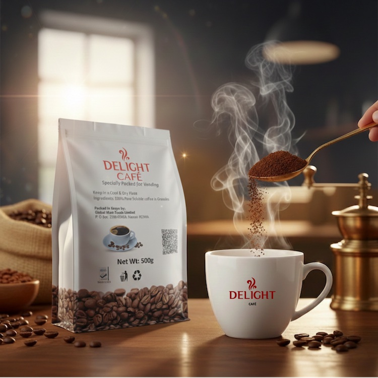 Delight Café Instant Coffee is a premium instant coffee developed for coffee lovers who seek strong aroma, balanced flavor, and everyday convenience. Made from high-quality Arabica beans sourced from top coffee-growing regions, it delivers a smooth and satisfying coffee experience.
