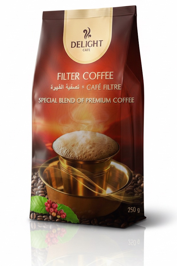 Delight Café Filter Coffee is a celebration of rich aroma, bold flavor, and timeless coffee tradition. Crafted for true coffee lovers, it is made from carefully selected coffee beans that are expertly roasted and finely ground to deliver a strong, smooth, and perfectly balanced cup.